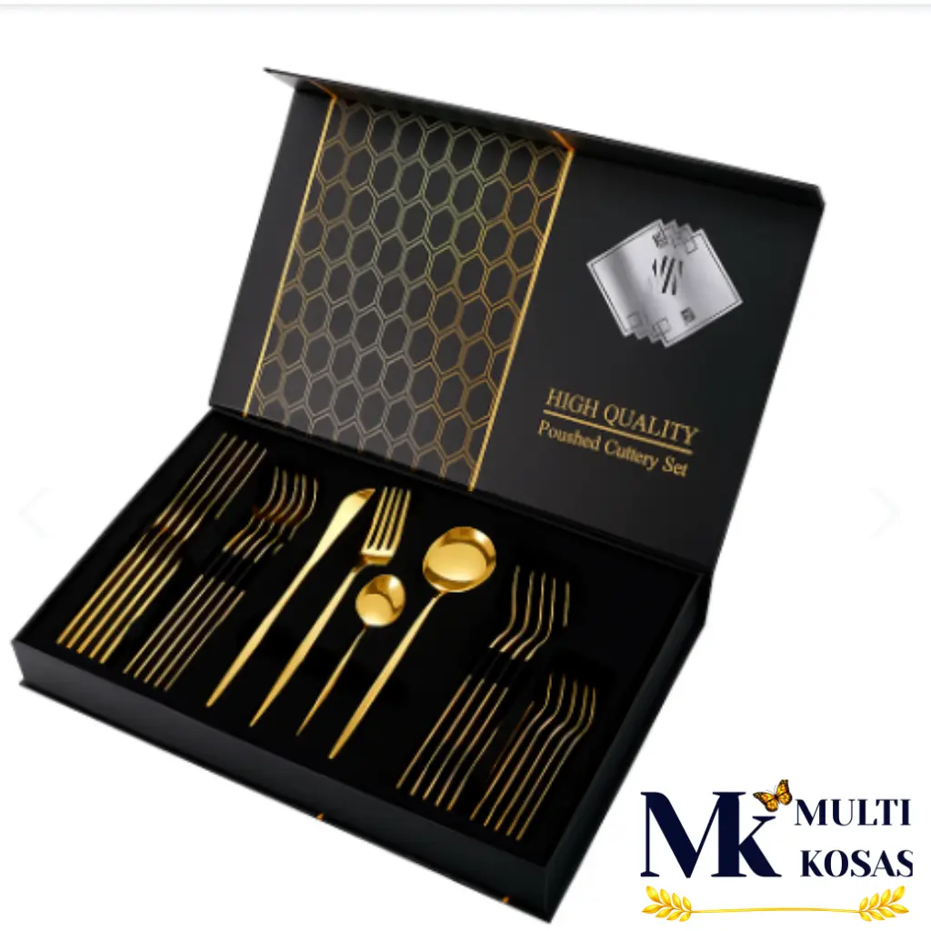 Contenido: Set completo de 24 piezas (6 Cuchillos, 6 Tenedores, 6 Cucharas, 6 Cucharitas). 📦