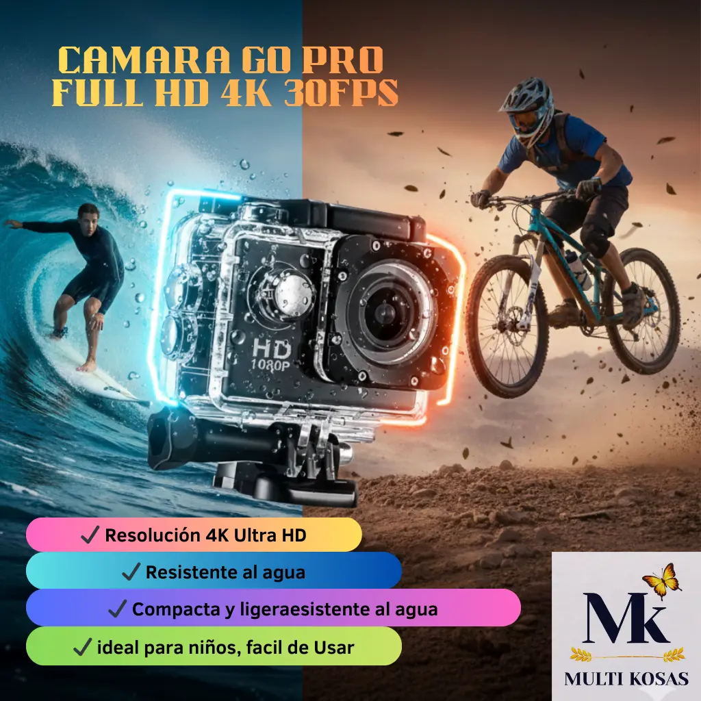 Lleva tu pasión por la aventura al siguiente nivel con la videocámara Action Go Sports. Diseñada para acompañarte en todos tus viajes, esta cámara de alta definición 4K captura cada detalle con una calidad impresionante, sin importar el destino. Playa, montaña, deportes extremos o momentos especiales con la familia y amigos, todo quedará registrado con una nitidez excepcional.
