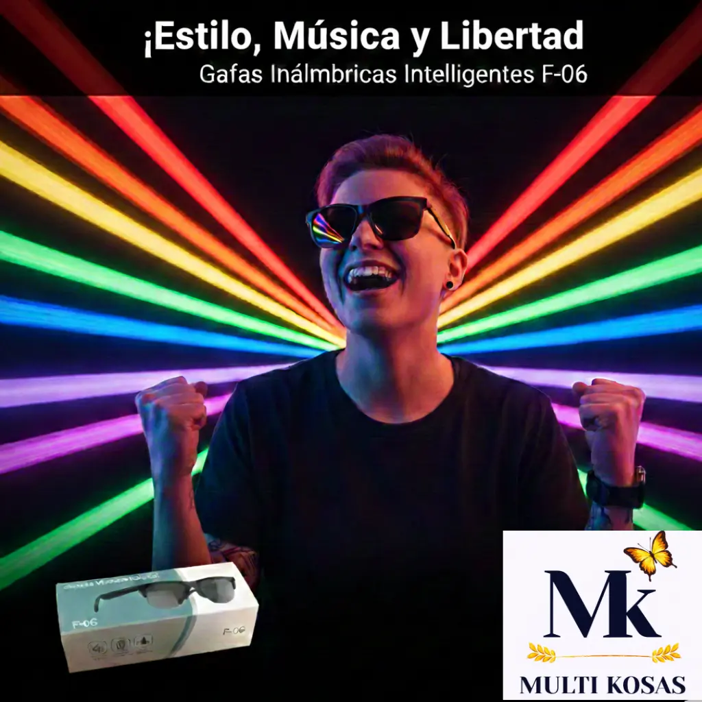 Experimenta la libertad como nunca antes. Las Gafas Inalámbricas Inteligentes F-06 no son solo un accesorio, son tu nueva forma de conectar con el mundo. Combina un estilo moderno y atrevido con tecnología de audio de vanguardia, para que disfrutes de tu música y llamadas con total comodidad, sin cables ni complicaciones.