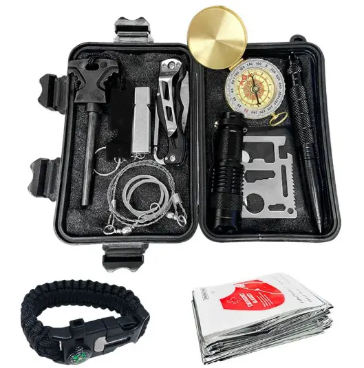 Incluye: 12 herramientas esenciales Material: Acero + ABS resistente Caja: Impermeable y compacta Uso: Outdoor, emergencia, supervivencia Portabilidad: Ligero y fácil de transportar